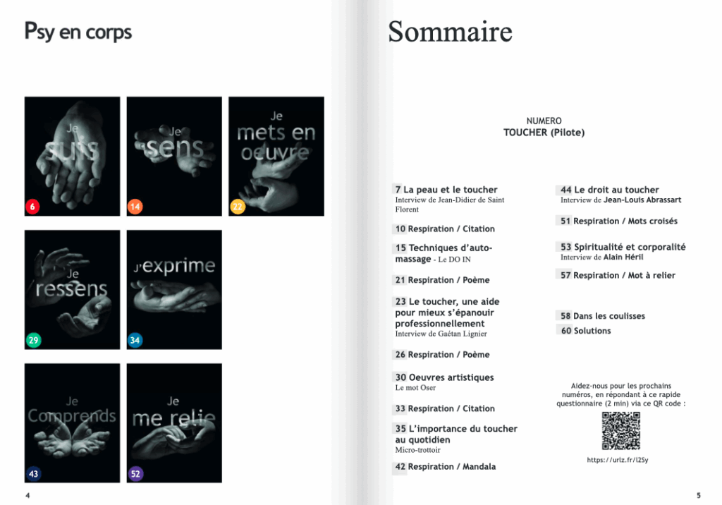 J’ai participé à la création et l’écriture d’une revue : Psy en corps, quand le corps a de l’esprit. Voici le numéro pilote en libre accès.